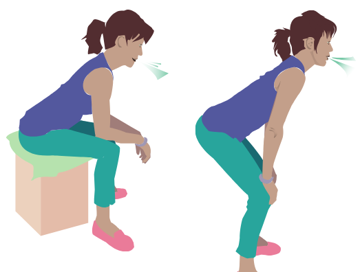 Il est bien connu des personnes qui souffrent de problème respiratoire de type BPCO (bronchopneumopathie chronique obstructive) que la position du cocher ou du gardien de but, c’est-à-dire l’appui des coudes ou des mains sur les jambes, le dos droit (posture), permet le relâchement des épaules et donc une meilleure respiration (illustration en fin d'article).